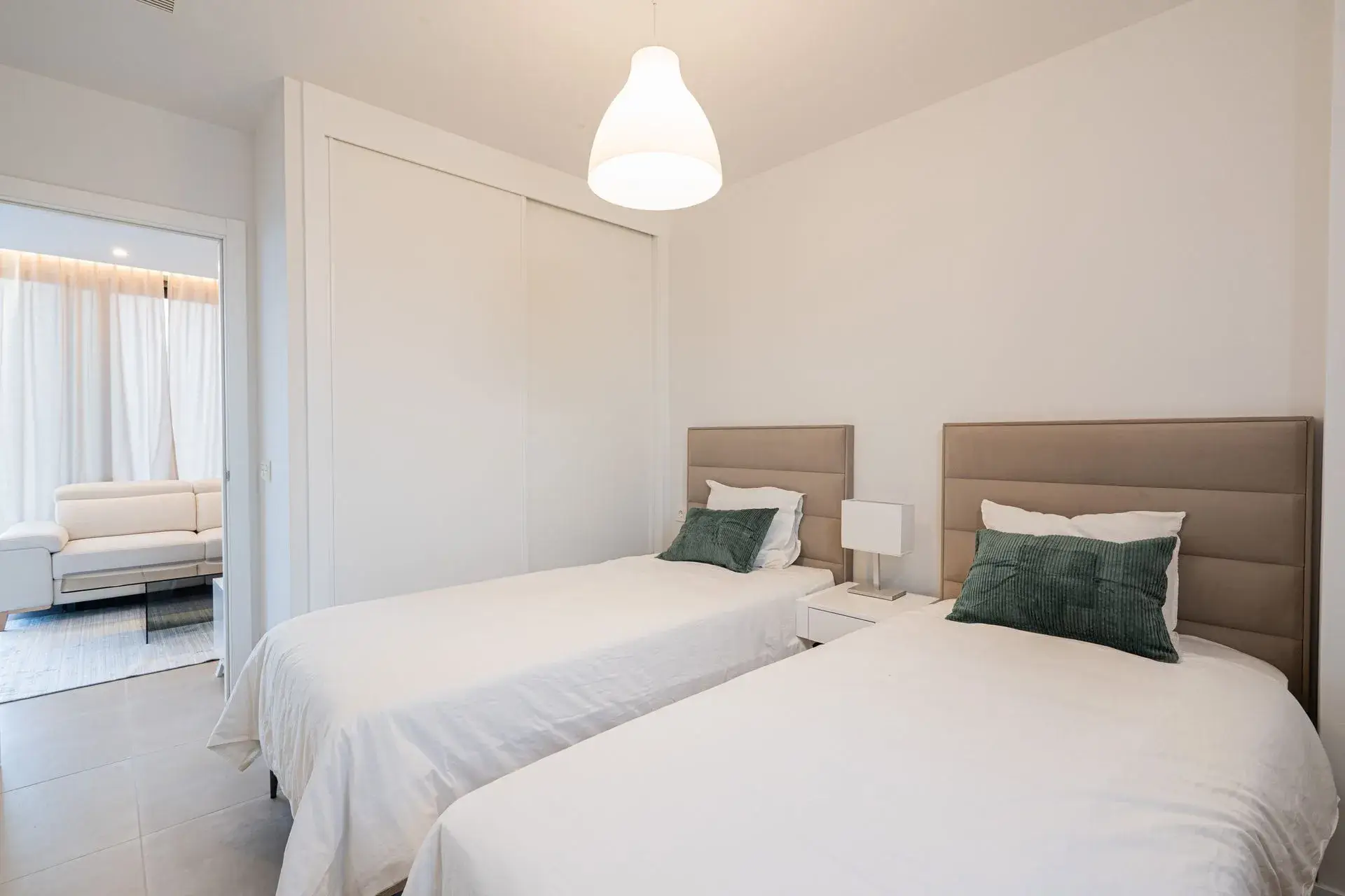Higueron West is a high-quality, innovative and sustainable residential area located on a quiet and green slope, opening up to the sea in Fuengirola. This fully furnished luxury duo is located in an intimate and cozy block surrounded by carefully designed gardens and a peace-friendly environment. The apartment has a bright and modern open base solution, stylish details and a spacious terrace that combines smoothly with a living space. The main bedroom has a private bathroom, and all interior design solutions have been implemented with high-quality materials.
